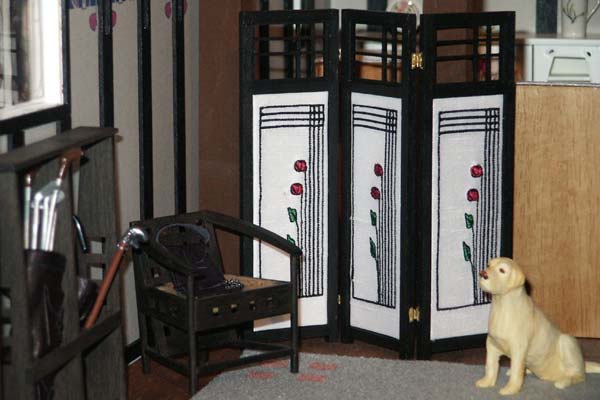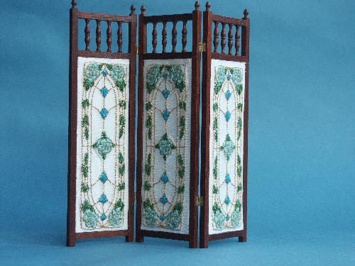 You may recognise the screen as a Macqueenie product. The inset panels are embroidered. I can sell you either the complete screen or the panels for you to fit yourself. Other sizes can be provided. | |