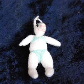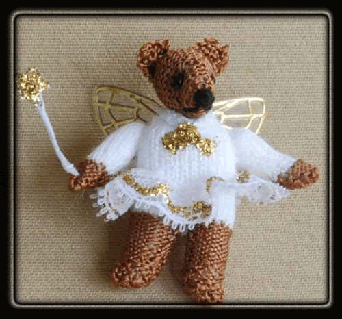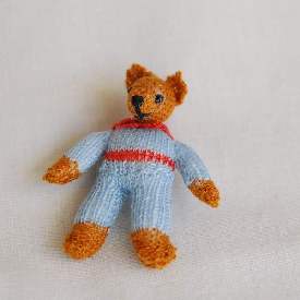 Golden Teddy Bear, like all my hand-knitted bears and dolls, is entirely hand-made. She is one-twelfth scale.